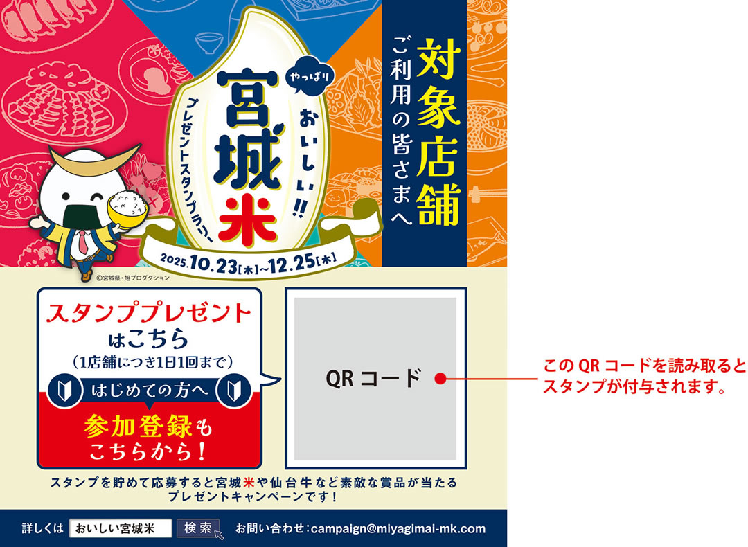 みやぎのお米TOP > お知らせ・活動報告 > 【2025.12.25(木)まで】やっぱりおいしい!!宮城米プレゼントスタンプラリー開催!