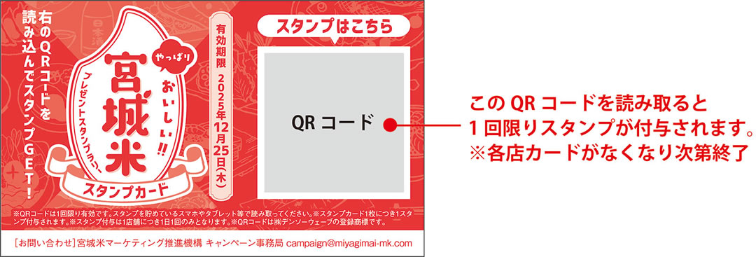 ※カードに記されたQRコードは可変QRコードのため、同一カードからのスタンプ付与は1回限りとなります。