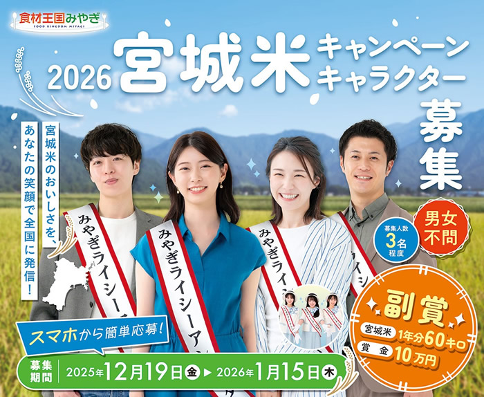 みやぎのお米TOP > お知らせ・活動報告 > 2026宮城米キャンペーンキャラクターを募集します!(終了しました)