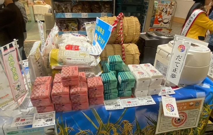 イベントでは、令和7年産だて正夢、ひとめぼれ、ササニシキ及び令和6年産金のいぶきの2kgやパックご飯、2合キューブを特別価格で販売しました。期間中はみやぎライシーアンバサダーが店頭に立ち、来店された皆様に、宮城米の特長や魅力を直接ご紹介しました。